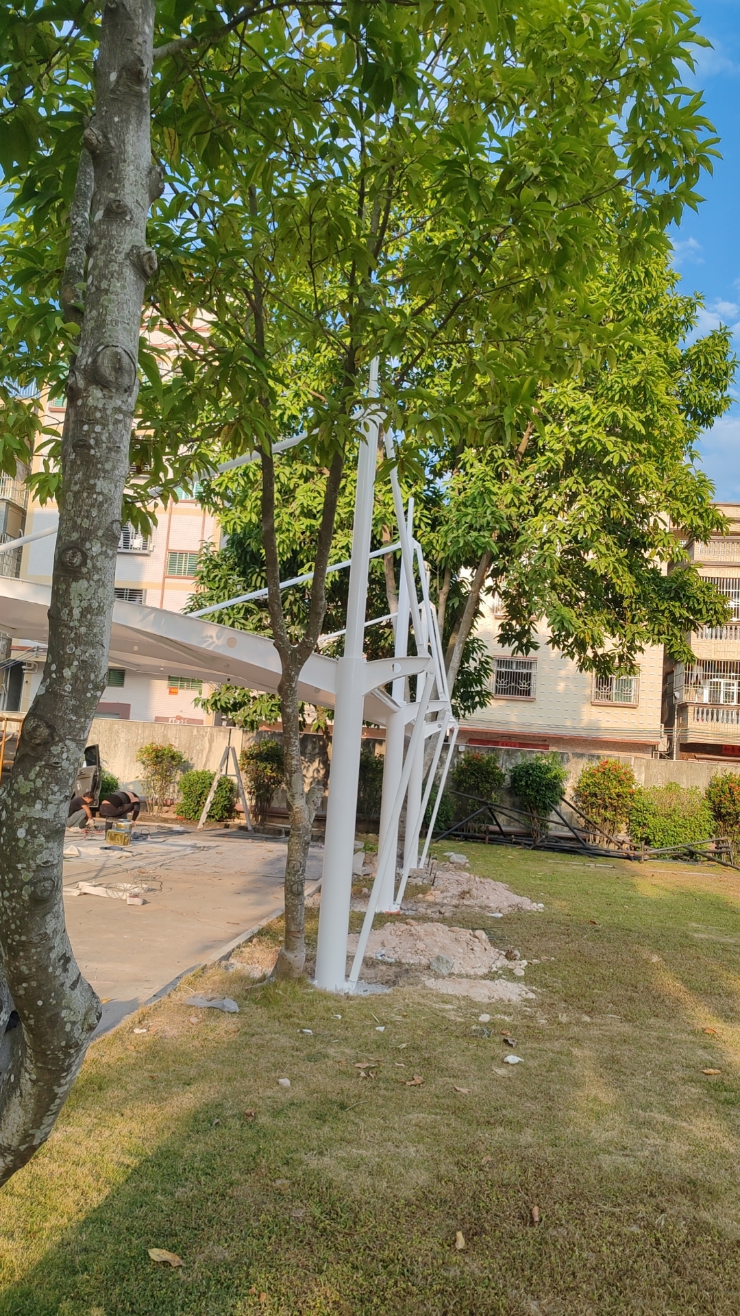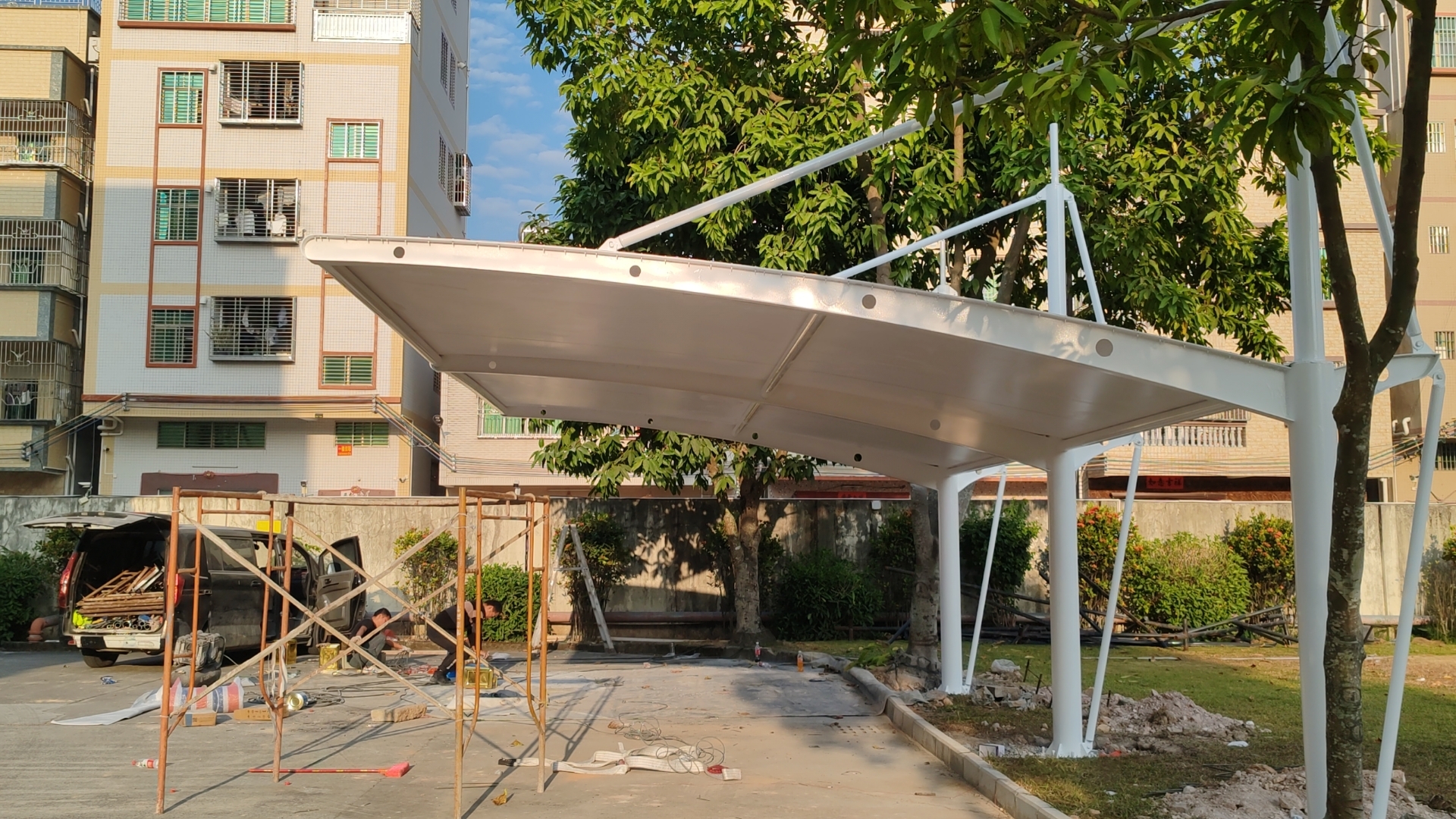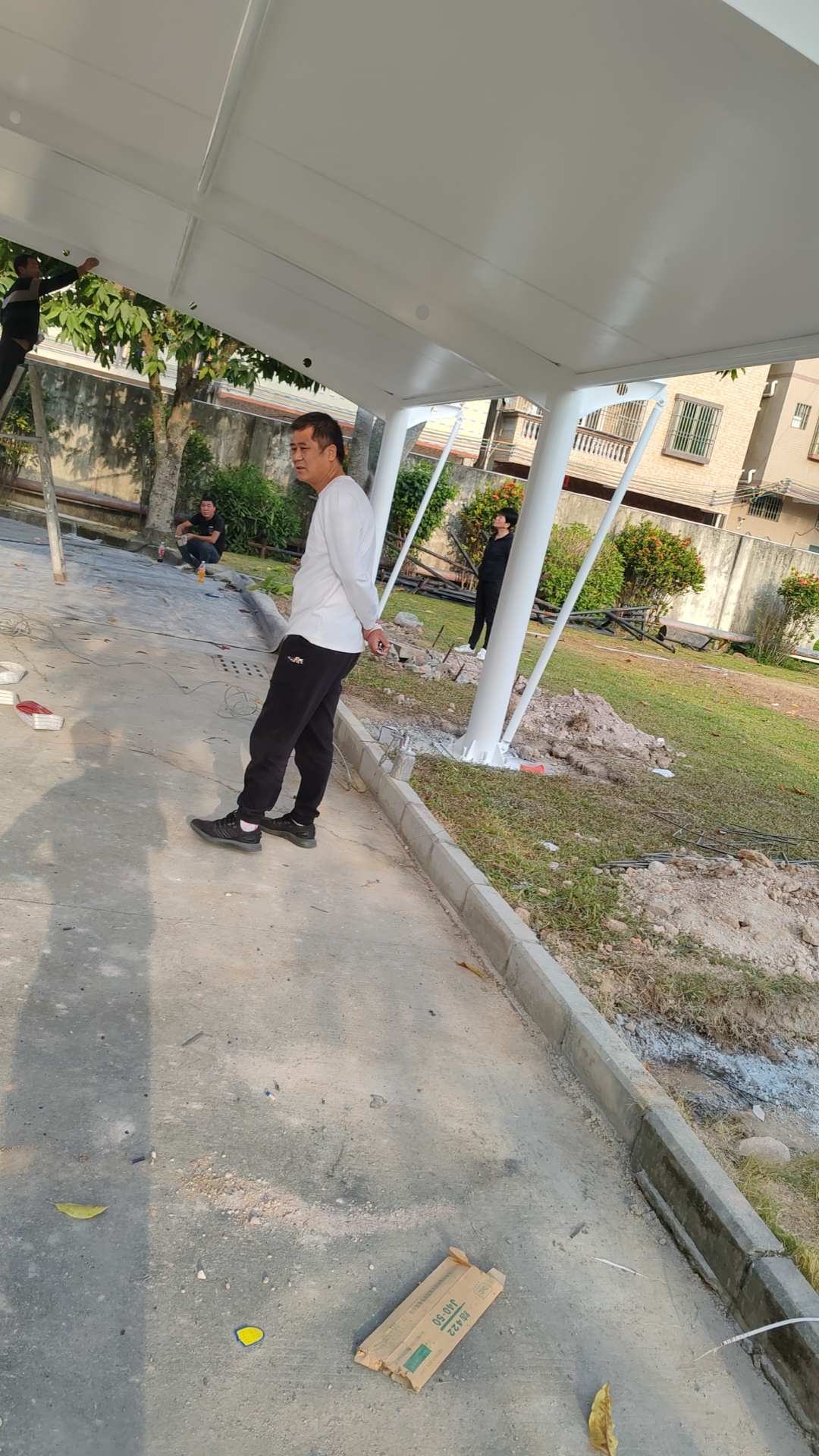 永茂昌旅游用品有限公司位于廣東省惠州市惠陽區沙田鎮東明村,雨棚才有鋼膜結構,施工如下: