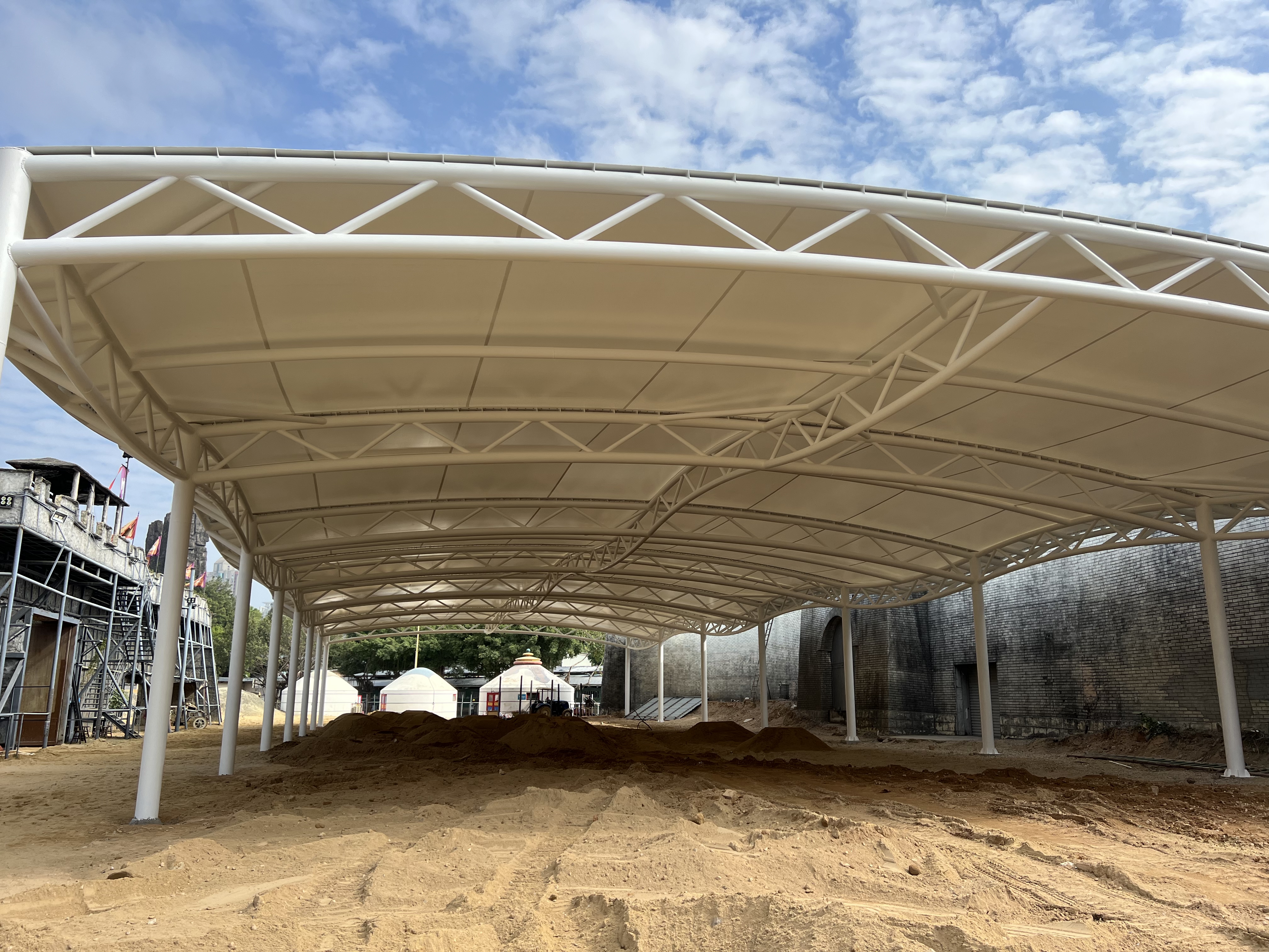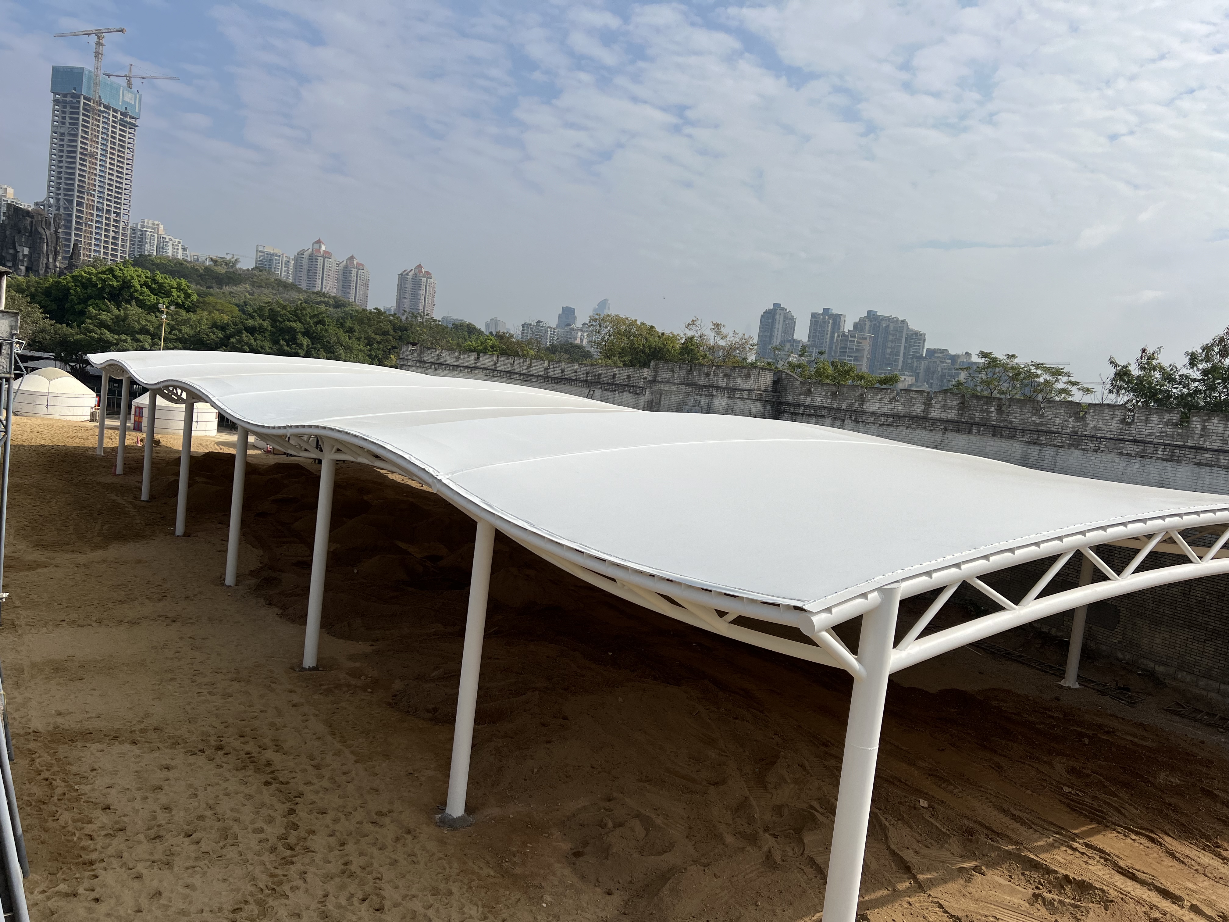 深圳錦繡中華民俗村馬場后勤膜結構項目位于深圳市南山區深南大道9003號中國民俗文化村內,是鋼結構膜結構雨棚,雨棚面積1200㎡。案例如下: